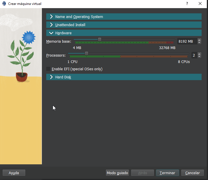 Configuración de la máquina Virtual / Instalación del sistema Operativo