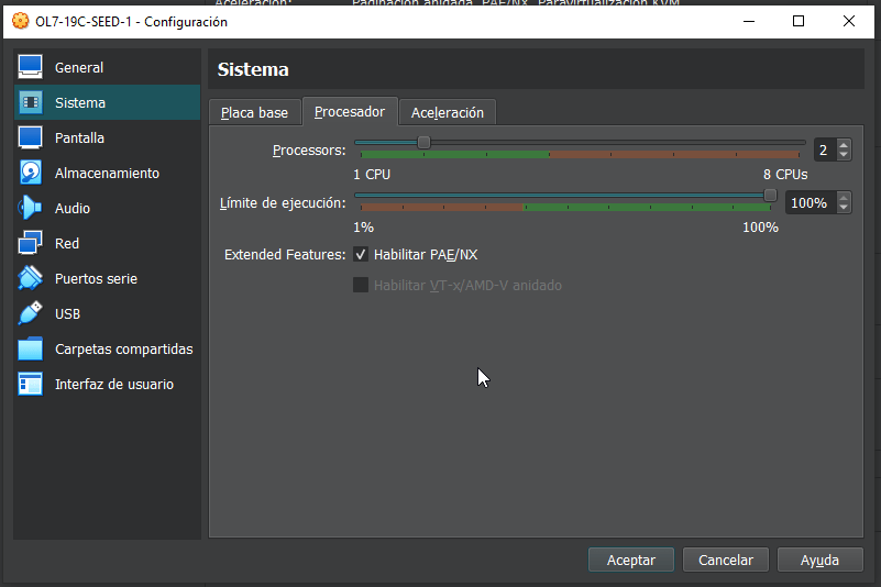 - Processors: (de acuerdoa los recursos disponibles en el equipo)