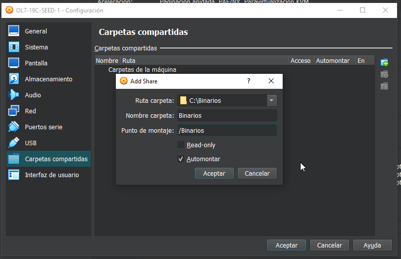 - Ruta carpeta:Crea una carpeta en donde estén tus binarios y rmps