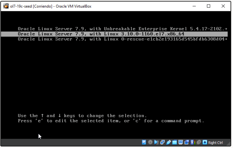 Oracle Linux Server 7.9 with inux 3.10.0-1160.el7.x86_64 (usualmente es el 2do renglón, pero ten precaución)