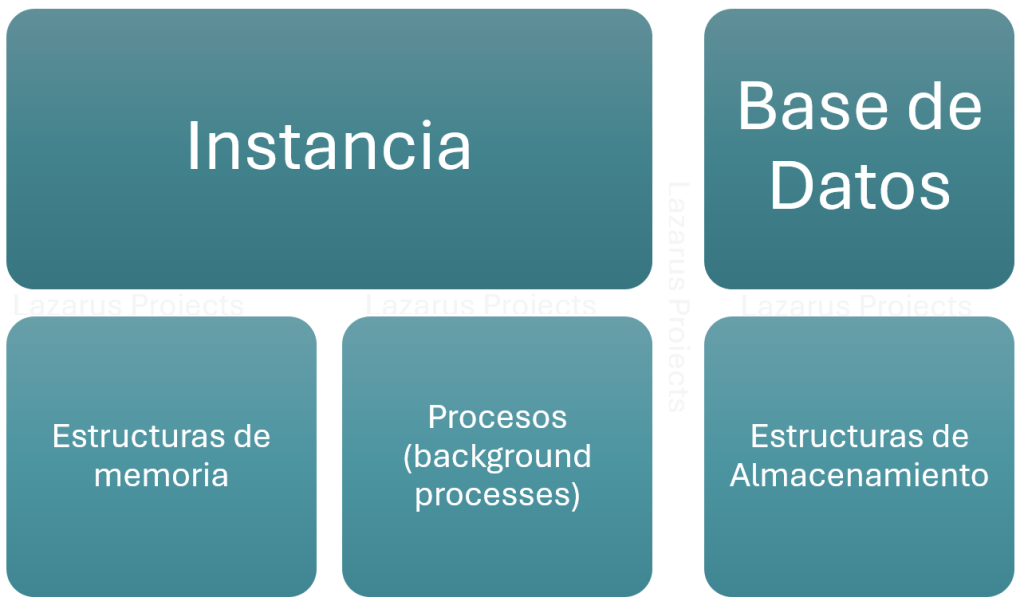 Una instancia consiste en el conjunto de estructuras de memoria y procesos asociados a ella, cada vez que iniciamos una instancia, se aloja una memoria llamada SGA (System Global Area) y los procesos de memoria son iniciado, estos procesos son hilos o mecanismos (por llamarlos de alguna forma) que trabajan en la memoria del servidor
