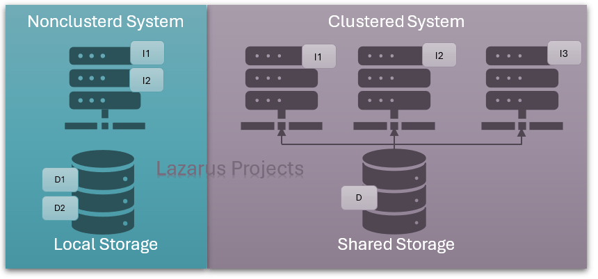 Cada instancia de base de datos esta asociada con una sola bd, si hay multiples bases de datos en el mismo servidor, entonces existe una instancia distinta y separada por cada base de datos. Una instancia de base de datos no puede ser compartida.