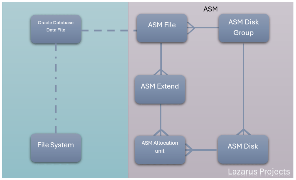 - ASM Metadata: Incluye información sobre la estructura de los grupos de discos, archivos y su distribución. Esta metadata es vital para el funcionamiento eficaz de ASM y su administración.